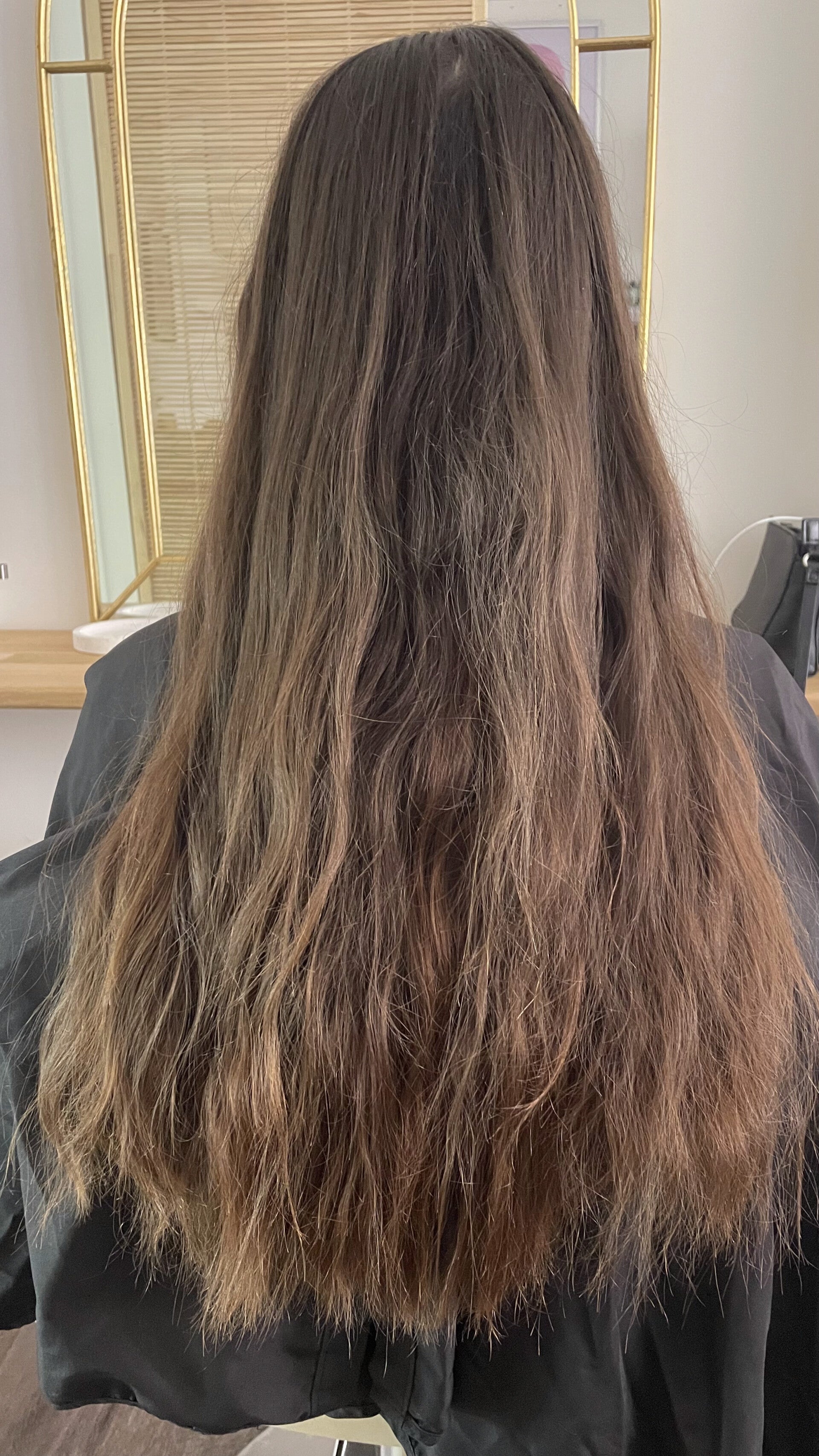 - L’effet cosmétique (brillance, douceur, souplesse) s'estompe au bout de 6 à 8 semaines (suivant l'entretien à la maison)
